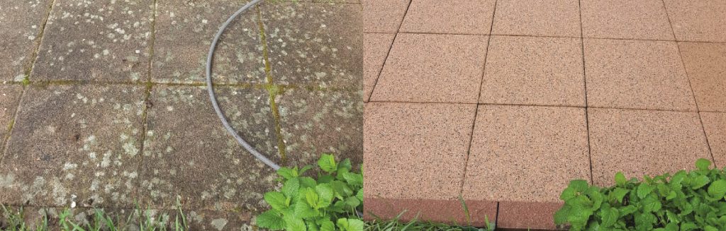 Wir verzichten beim Reinigen komplett auf chemische Mittel! Oft als wahre Wundermittel angepriesen sind diese chemischen Reiniger sehr umweltschädlich und nur von kurzer Dauer von Erfolg gekrönt. Wir entfernen Algen, Moose und Schmutz mit der Kraft des Wassers, so gelangen keine Schadstoffe in Ihren Boden.